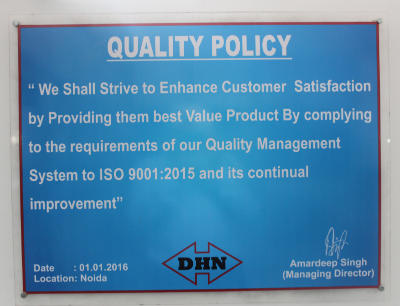 We here at DHN ensure quality products to be delivered at our prestigious customers.The management in line with the quality policy defines quantified quality objectives. Quality objectives have been defined to meet the requirements for the product at relevant functions and level. Quality Objectives and measurements are included in the business plan to deploy the quality policy. Quality objectives are defined in such a way so as to meet the customer expectations and be achievable over a defined time frame. We have a qualified quality team of dedicated professionals who ensure all the process with best quality at regular interval while doing Incoming Quality Control (IQC), Process Quality Control (PQC) &Final Quality Control (FQC) to ensure the material dispatched should be of perfect quality and hence we get a positive feedback from our valuable customers.All products by the Company are strictly checked as per the customer defined requirements during entire process.